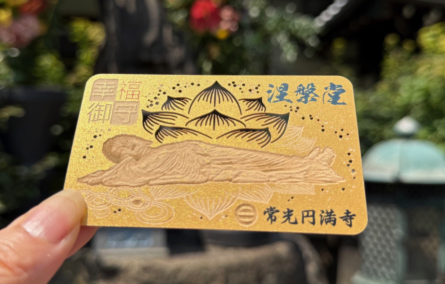 幸福の象徴である釈迦涅槃像と蓮の花が描かれております。